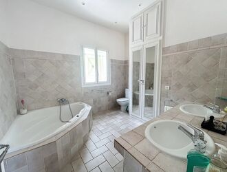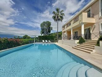 Californian villa of approximately 270 m2 on 1500 m of wooded park overlooking the golf course with panoramic views of the Esterel composed of 5 bedrooms upstairs including a master with full bathroom and 3 additional shower rooms.