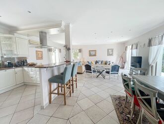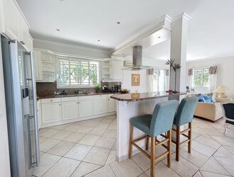 in a residential area of Mougins, on a plot of 1000 sqm with swimming pool & pool house, detached villa of 255 sqm composed of 2 apartments, on the ground floor renovated in 2017: living room, kitchen fitted / equipped open on a beautiful sunny terrace with jacuzzi, 3 bedrooms, 2 bathrooms, guest toilet and laundry. 1st floor to refresh: double living room, kitchen equipped / furnished, 2 bedrooms, 2 bathrooms, guest toilet and access to the attic that can be converted into additional bedrooms.